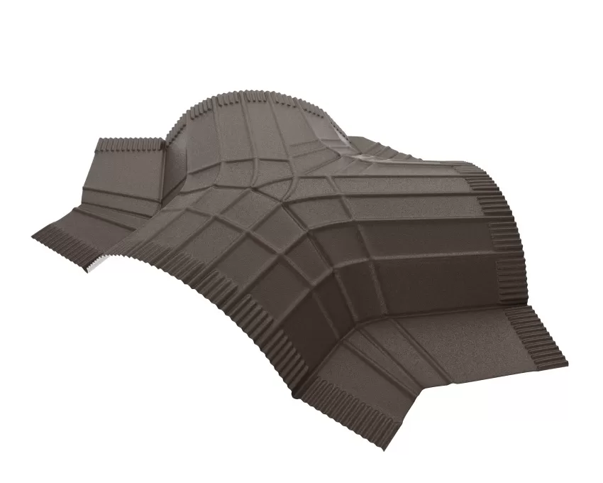 Y-тройник предназначен для соединения трех полукруглых коньков в месте их соединения (на вальмовых крышах). Универсальный элемент, подходит для скатов с углом наклона до 60 градусов.