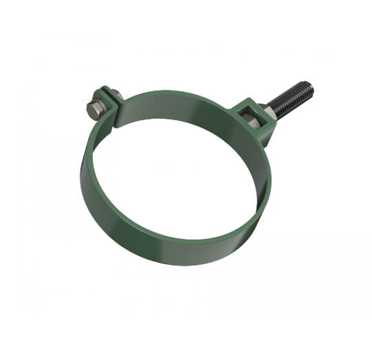 Хомут трубы ТЕХНОНИКОЛЬ металлический ПВХ зеленый – элемент водосточной системы, которая устанавливается на скатных кровлях. Используется, чтобы закрепить трубу на нужном расстоянии от фасада. Размер – 140мм.