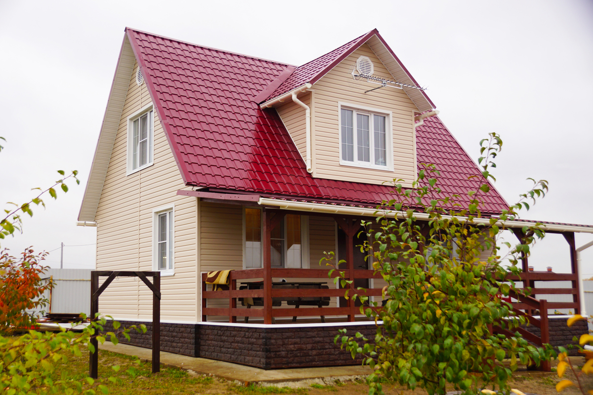 Сделали крышу на даче и довольны! Металлочерепица легкая, при этом прочная, монтировать было удобно. Цвет стойкий, без разводов, все пришло вовремя