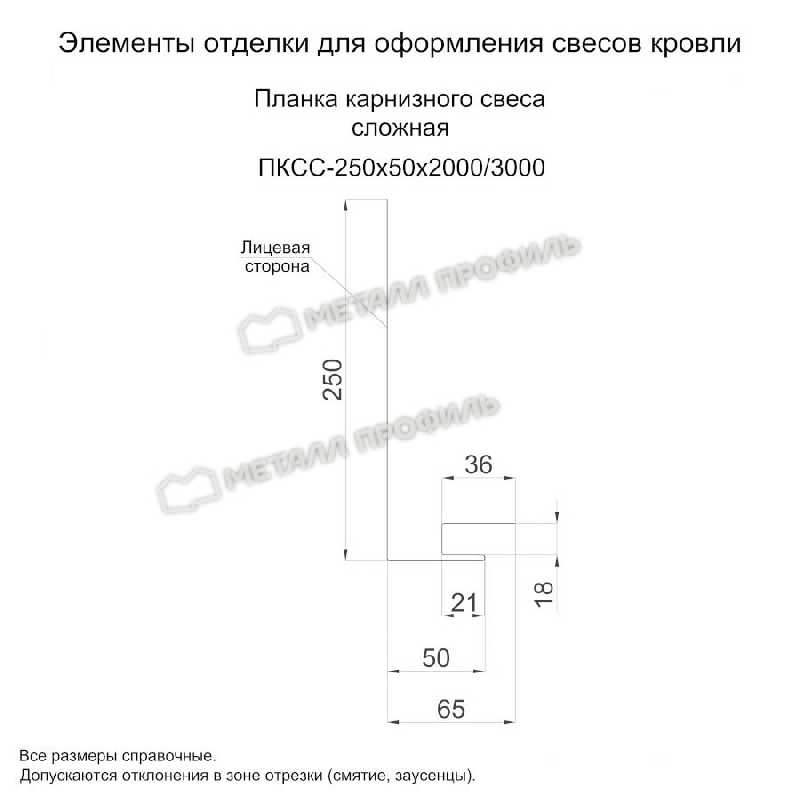 Планка карнизного свеса сложная 250х50х3000 (VikingMP-01-9005-0.45)