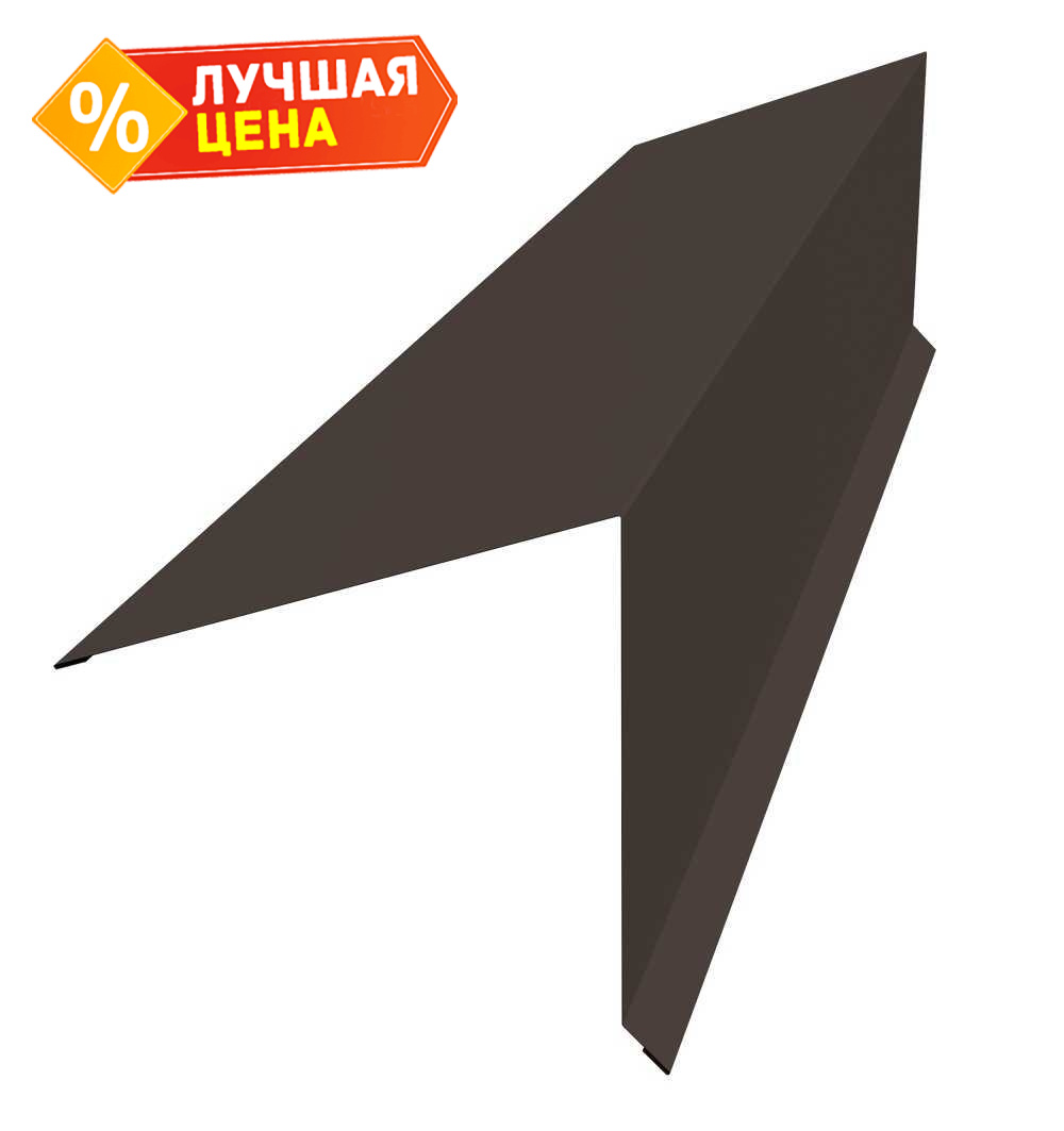 Планка конька односкатной кровли Grand Line 180x160 0,5 GreenCoat Pural BT с пленкой RR 32 темно-коричневый (RAL 8019 серо-коричневый)
