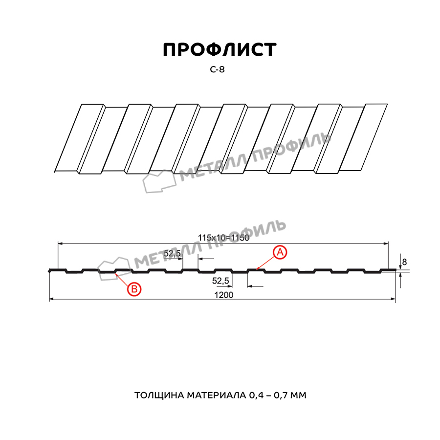 Профлист Металл Профиль С-8 0,7 Полиэстер RAL 3011 Коричнево-красный | B - это высококачественный строительный материал, предназначенный для использования в различных строительных проектах. Профиль С-8 обладает прочной и надежной конструкцией, что делает его идеальным выбором для кровельных и фасадных работ. Толщина профлиста составляет 0,7 мм, что обеспечивает его долговечность и стойкость к внешним воздействиям. Полиэстеровое покрытие RAL 3011 Коричнево-красное придает профлисту эстетически привлекательный внешний вид, а также защищает его от коррозии и ультрафиолетовых лучей. Профлист Металл Профиль С-8 0,7 Полиэстер RAL 3011 Коричнево-красный | B легко монтируется и имеет универсальные размеры, что позволяет его использовать в различных проектах. Он идеально подходит для крыш зданий, ангаров, складов, а также для облицовки фасадов. Этот профлист отличается высокой прочностью и долговечностью, что делает его надежным решением для защиты зданий от внешних воздействий. Он также обладает хорошей звукоизоляцией и теплоизоляцией, что помогает создать комфортные условия внутри помещений. Профлист Металл Профиль С-8 0,7 Полиэстер RAL 3011 Коричнево-красный | B - это отличный выбор для тех, кто ищет надежный и эстетически привлекательный материал для своих строительных проектов.