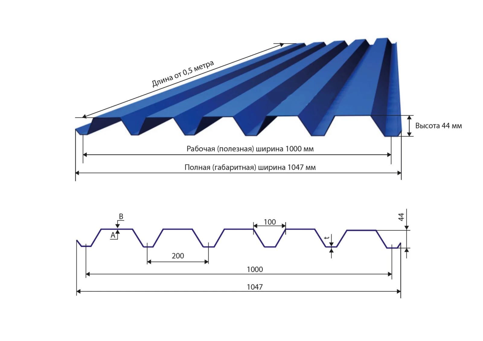 Приобретите Профнастил ЮджинСтрой С44 Полиэстер 0,5, Ral 5005 сигнально-синий и создайте надежную и привлекательную кровлю или фасад для вашего объекта!