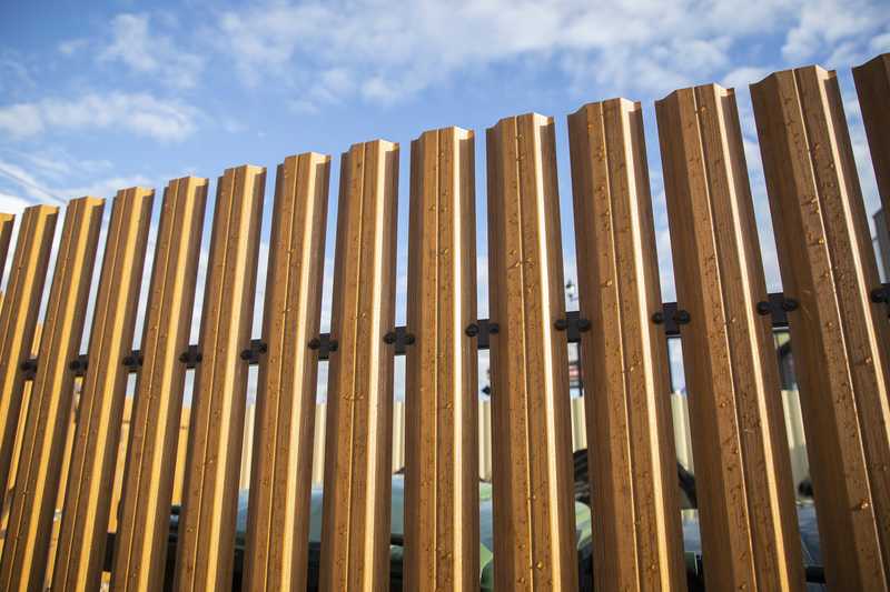 Металлический штакетник для забора П-образный А Grand Line 0,4 Print Premium Golden Wood